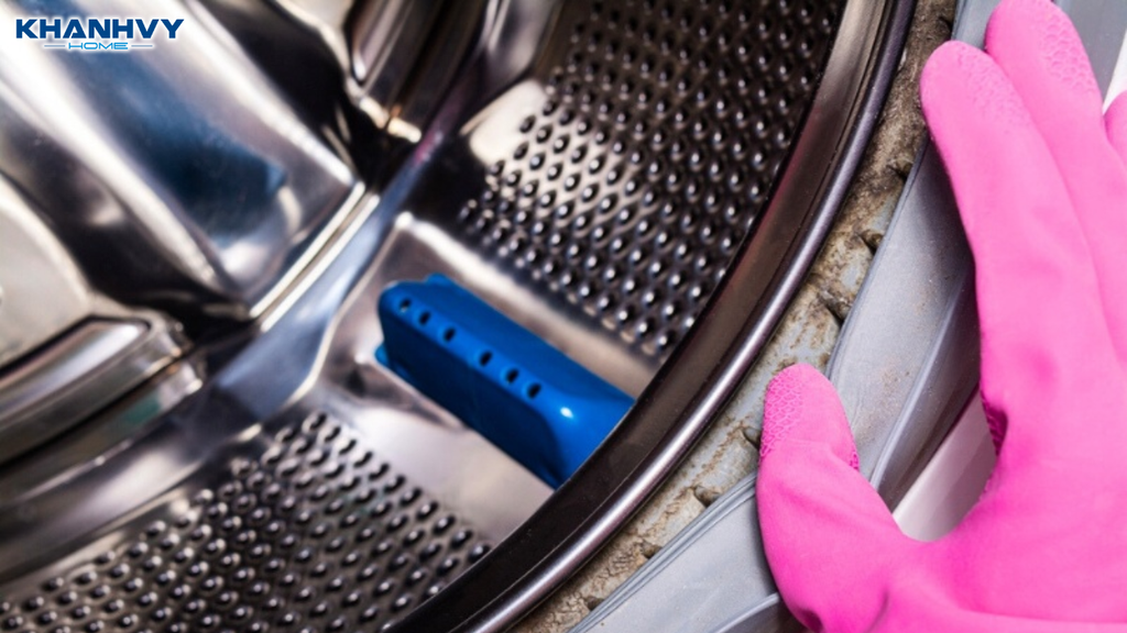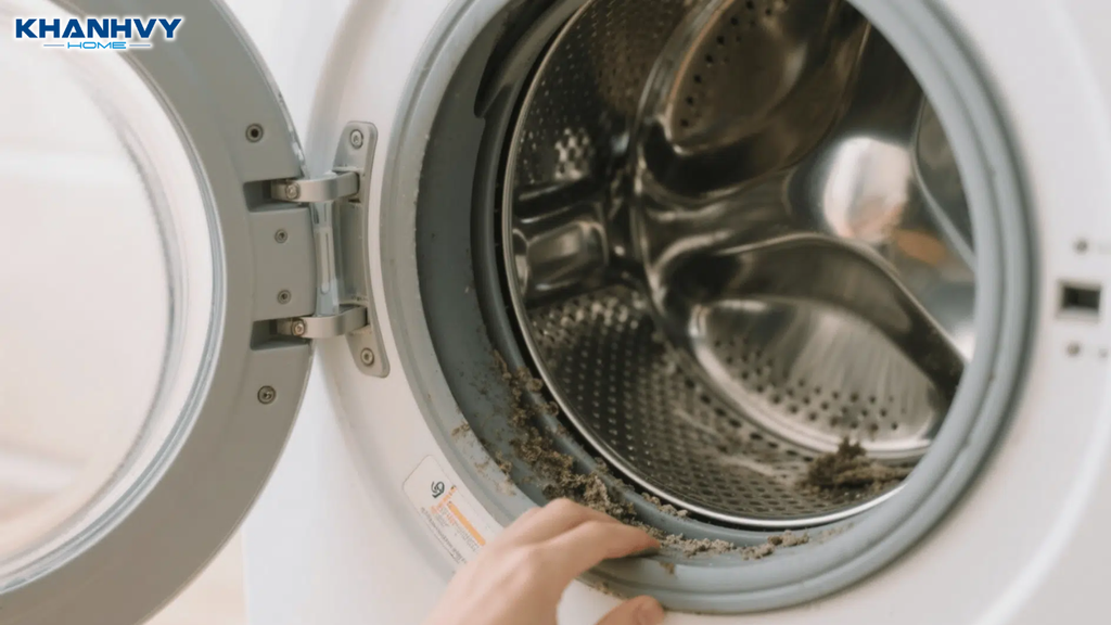 Gioăng cao su ở cửa máy giặt thường tích tụ bụi bẩn