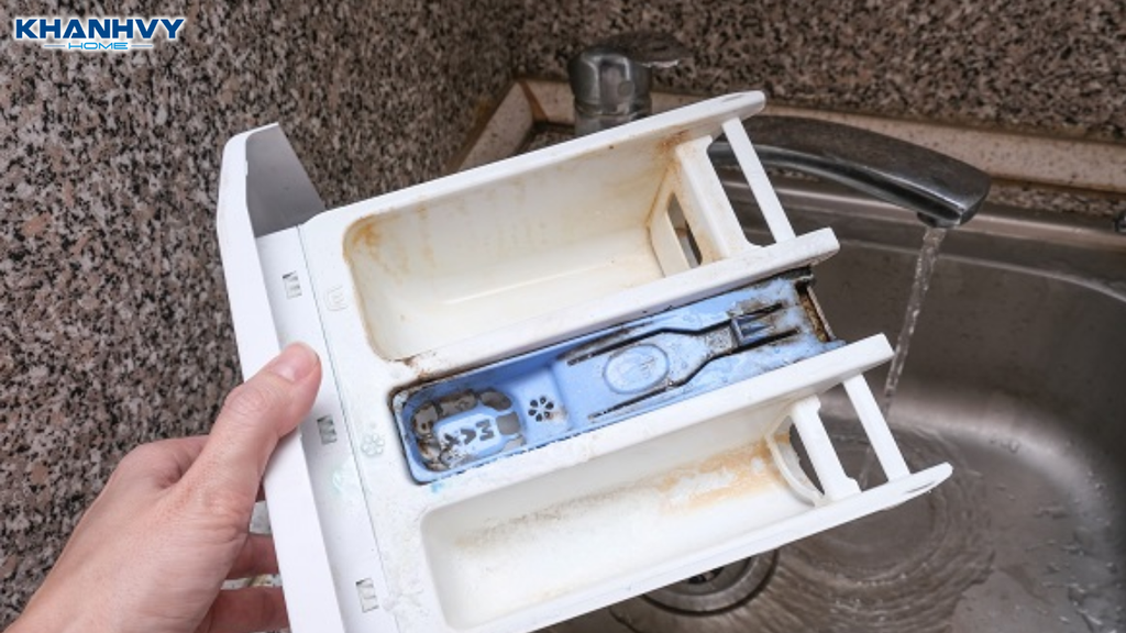 Vệ sinh khay đựng bột giặt và nước xả