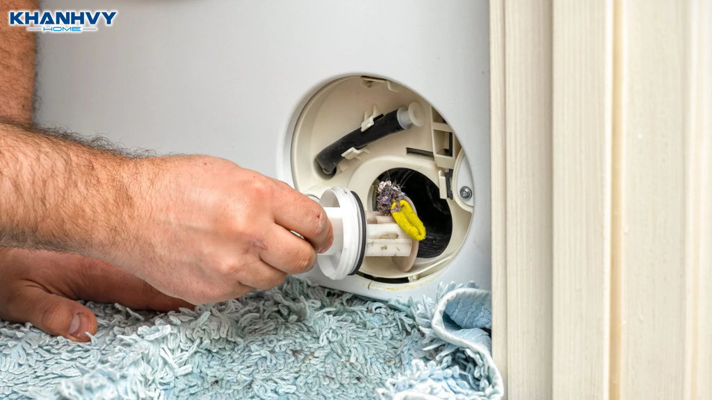 Bước 4: Kiểm tra và làm sạch ống lọc cặn: Mở nắp bộ lọc theo hướng dẫn của nhà sản xuất, lấy rác và cặn vải ra ngoài, rửa sạch rồi lắp lại đúng vị trí.