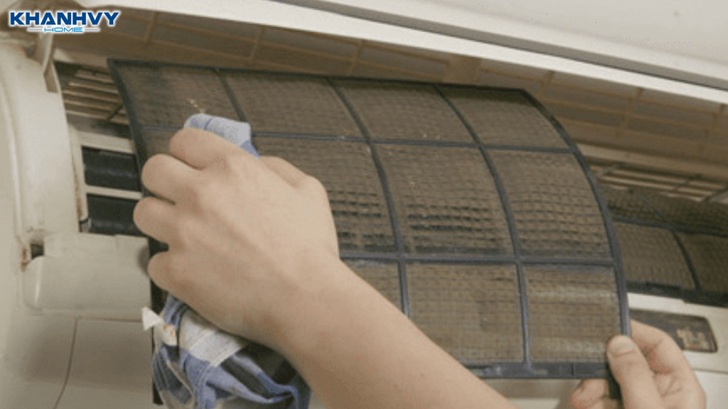 Bước 4: Dùng khăn khô hoặc chổi mềm lau bụi bám ở mặt nạ và các khe gió.