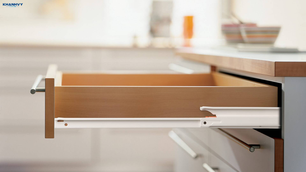 - Ray trượt ngăn kéo: Chuyển động mượt mà, chịu lực tốt, giúp việc kéo – đẩy ngăn kéo trở nên dễ dàng, phù hợp với nhiều loại tải trọng.