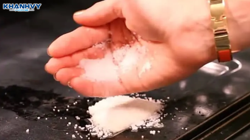 Muối có cấu trúc tinh thể và tính hút ẩm cao, giúp hấp thụ dầu mỡ nóng chảy ngay khi thức ăn tràn ra, đồng thời làm gián đoạn liên kết giữa dầu mỡ và bề mặt lò nướng. Nhờ đó, cặn cháy không kịp bám cứng và dễ được loại bỏ hơn sau khi lò nguội.