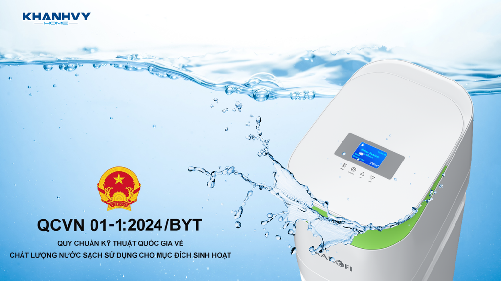 Nguồn nước sau xử lý đạt quy chuẩn nước sạch sinh hoạt theo QCVN 01-1:2024/BYT . Điều này mang lại sự an tâm về mặt tiêu chuẩn kỹ thuật, đặc biệt với gia đình đề cao chất lượng sống. Việc kiểm soát chất lượng đầu ra theo quy chuẩn giúp tăng độ tin cậy của hệ thống.