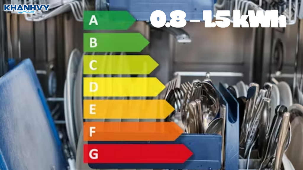 Mức độ tiêu thụ điện của máy rửa bát từ 0.8 - 1.5 KWh cho 1 lần