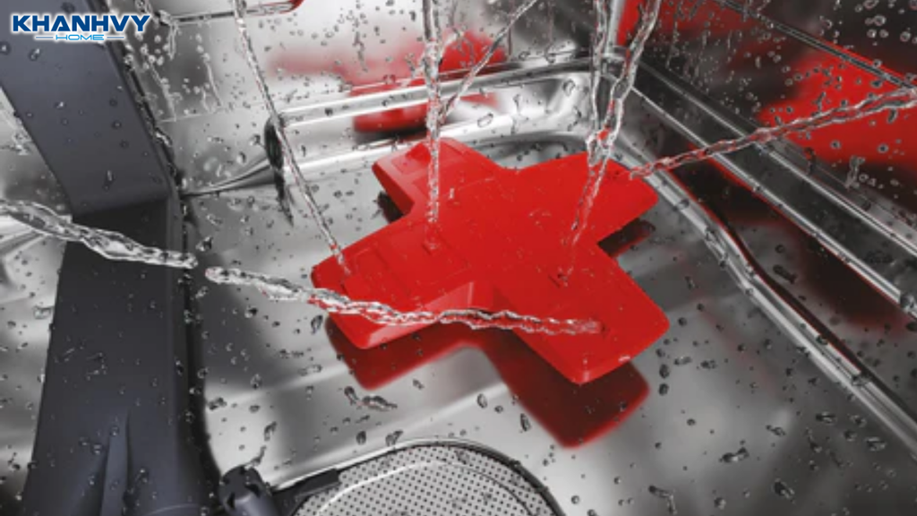 Sau khi đạt nhiệt độ tiêu chuẩn, hệ thống bơm đẩy nước qua các tay phun xoay 360 độ để làm sạch bát đĩa. Điện năng lúc này chủ yếu dùng cho motor bơm, mức tiêu thụ thấp hơn nhiều so với thanh nhiệt. Nước được lọc và tái sử dụng thay vì làm nóng mới liên tục.