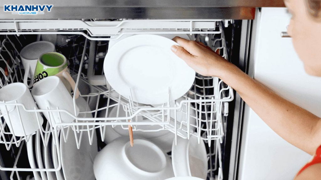 Ngoài ra, nên sắp xếp đúng theo thiết kế của từng khay: vật dụng lớn ở khay dưới, đồ nhỏ và nhẹ ở khay trên. Việc xếp đúng không chỉ giúp nước phun tiếp cận đều hơn mà còn tránh va chạm, đổ vỡ trong quá trình rửa.