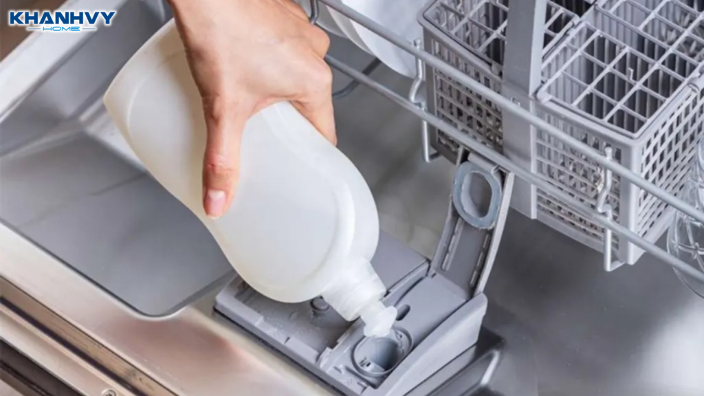 Nguyên nhân: Nhiều người nhầm lẫn giữa nước rửa bát thông thường và chất tẩy rửa cho máy rửa bát. Việc dùng sai loại hoặc dùng viên rửa kém chất lượng khiến dầu mỡ không được làm sạch triệt để. Bên cạnh đó, thiếu muối rửa bát và nước làm bóng dễ gây cặn trắng, làm mờ ly cốc.