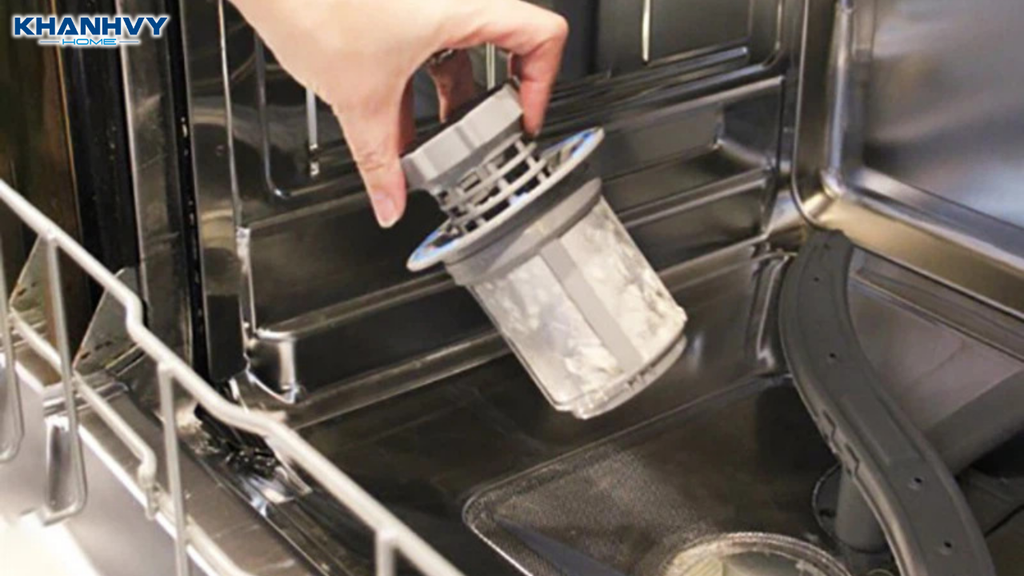 Cách xử lý: Bạn nên tháo bộ lọc và vệ sinh định kỳ, lý tưởng là mỗi 1–2 tuần tùy theo tần suất sử dụng. Việc làm sạch bộ lọc không chỉ giúp bát đĩa sạch hơn mà còn hạn chế mùi hôi và kéo dài tuổi thọ cho máy.