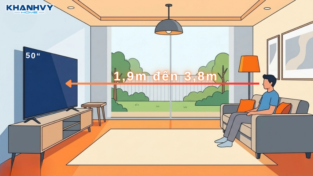 Khoảng cách xem lý tưởng cho tivi 50 inch