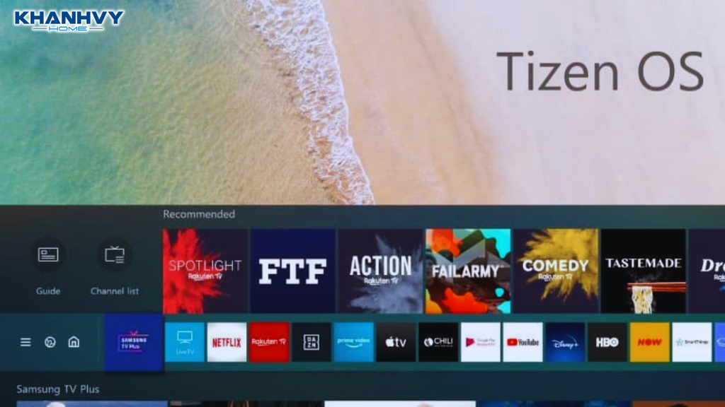 Hệ điều hành Tizen được Samsung phát triển và sử dụng độc quyền trên Smart Tivi Samsung. Tizen OS nổi bật với giao diện trực quan, dễ sử dụng, tích hợp các ứng dụng giải trí phổ biến, hỗ trợ chia sẻ màn hình và điều khiển thông minh bằng điện thoại.