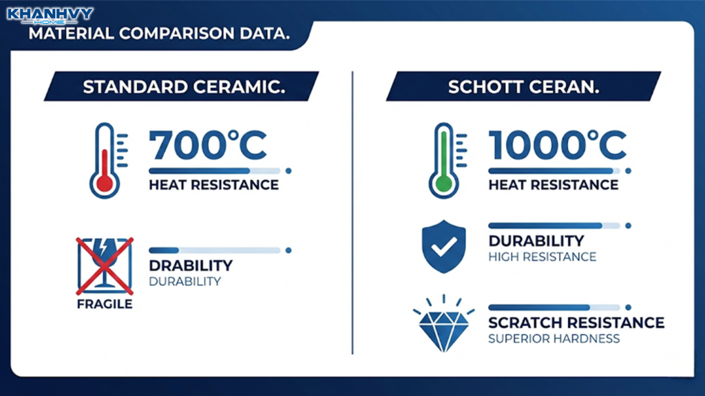 Tiêu chí | Mặt kính Ceramic (Thường) | Mặt kính Schott Ceran (Đức) |