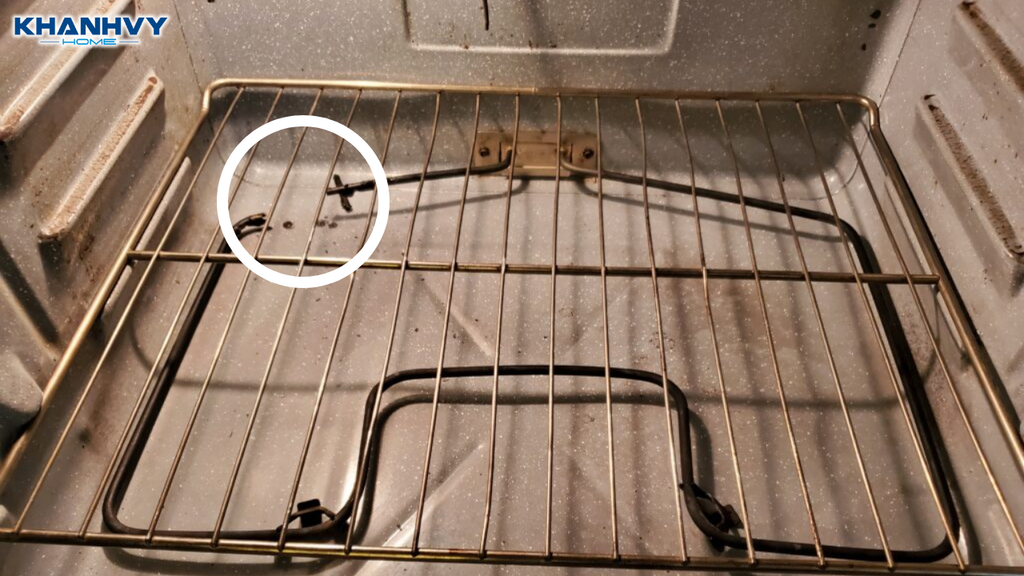 - Dầu mỡ, vụn thực phẩm tích tụ lâu ngày trong khoang lò