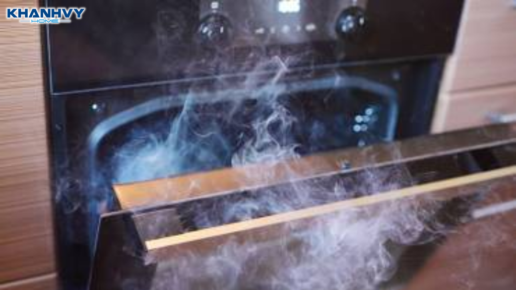 Dấu hiệu: Khi vận hành, lò phát ra mùi khét rõ rệt hoặc có khói bốc lên từ khoang nướng, dù không có thực phẩm cháy bên trong. Mùi khét có thể tăng dần theo thời gian sử dụng.