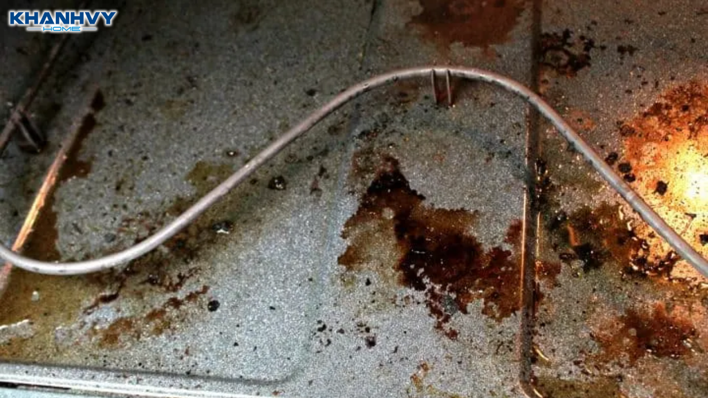 Sau một thời gian sử dụng, bên trong lò nướng sẽ xuất hiện dầu mỡ và vụn thức ăn bám lại, nhất là ở đáy và các góc khuất. Nếu để lâu, việc lau chùi sẽ khó hơn và lò cũng dễ ám mùi khi nấu.