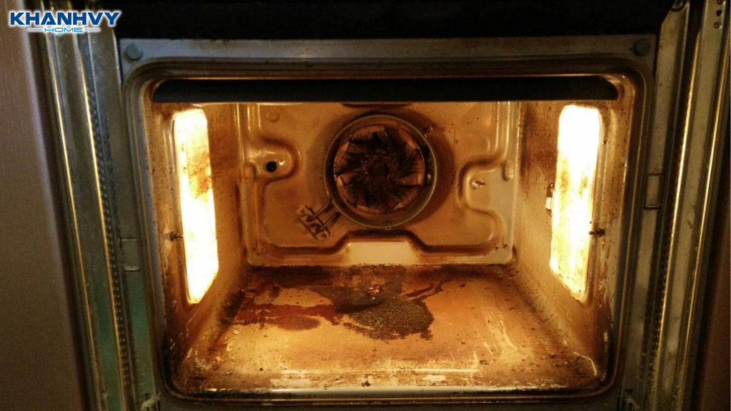 Quạt đối lưu của lò nướng bị bụi bẩn dầu mỡ bám vào