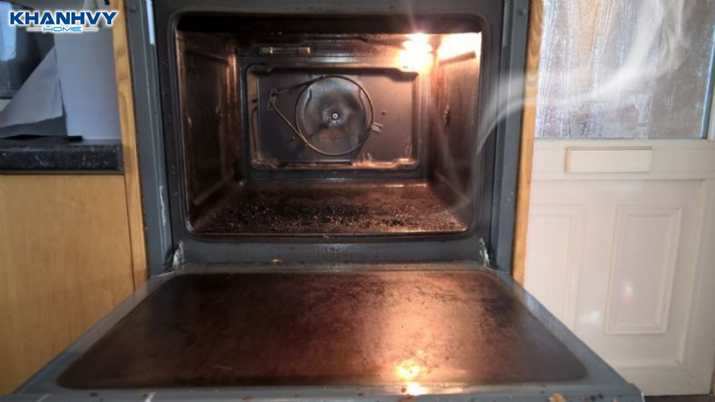 Khi lò nướng bắt đầu tăng nhiệt, các lớp dầu mỡ và cặn thực phẩm còn bám bên trong sẽ bị đốt nóng lại. Ở giai đoạn này, không chỉ mùi khét xuất hiện mà còn hình thành khói mỏng, đôi khi khó nhìn thấy bằng mắt thường. Khói này sinh ra ngay từ những mảng bám cũ, chứ không phải từ thực phẩm đang nướng.