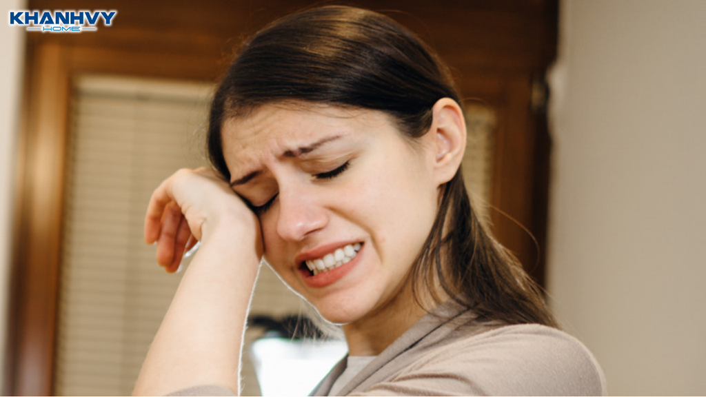 Khói từ thức ăn sót lại cháy làm cay mắt khi nấu ăn