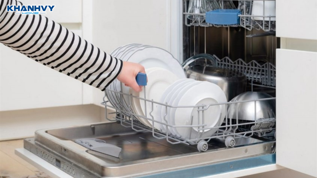 Ngăn chứa viên rửa bát bị che do xếp bát đĩa sai cách