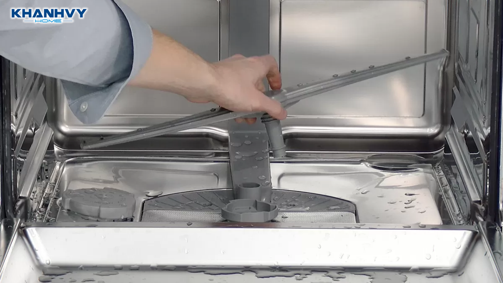 Viên rửa bát không chỉ cần nước nóng mà còn cần áp lực nước đủ mạnh để tan đều. Nếu tay phun bị tắc do cặn thức ăn hoặc xoay không trơn tru, nước sẽ không phân bổ đều trong khoang máy.