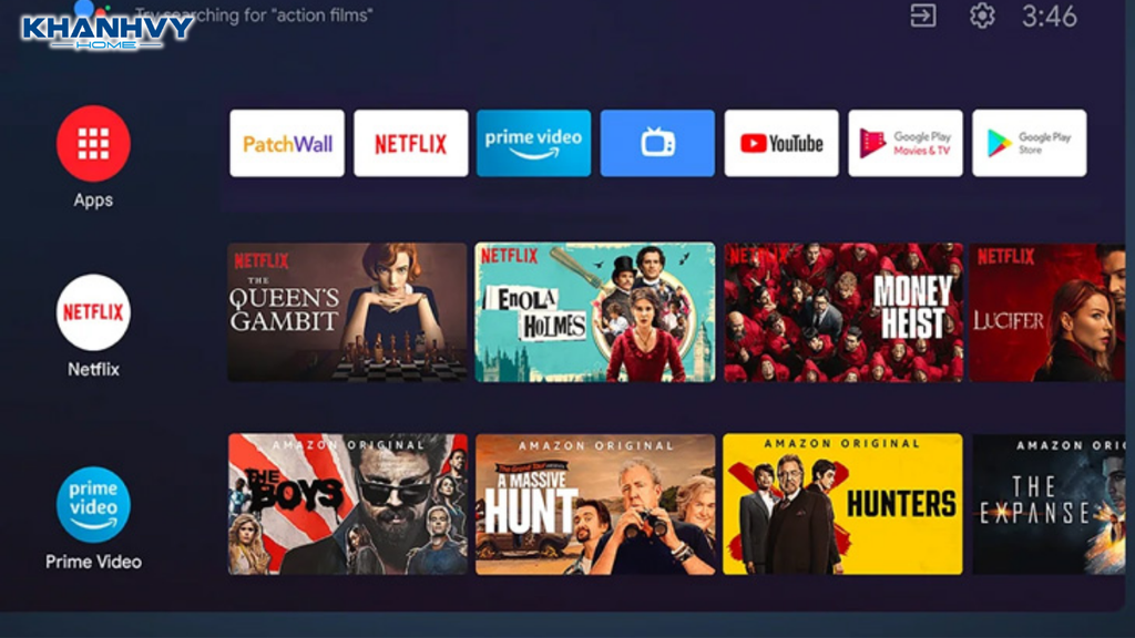 Hầu hết tivi TCL hiện nay sử dụng Google TV hoặc Android TV, mang lại lợi thế lớn về kho ứng dụng và khả năng tùy biến. Người dùng có thể dễ dàng cài đặt các ứng dụng phổ biến như YouTube, Netflix, FPT Play hay Spotify.