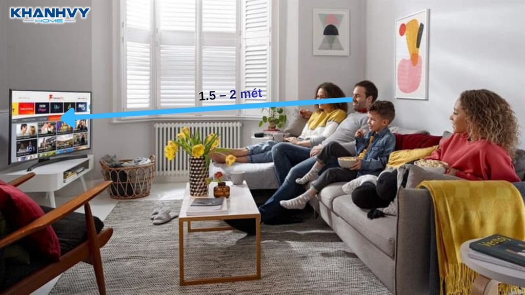- Tivi 50–55 inch: khoảng 2 – 2.5 mét