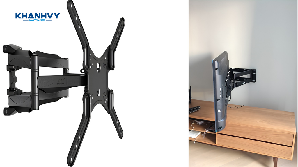 Đặc điểm | Treo sát tường, không điều chỉnh | Có thể nghiêng / xoay nhẹ | Xoay - kéo ra - thu vào linh hoạt |