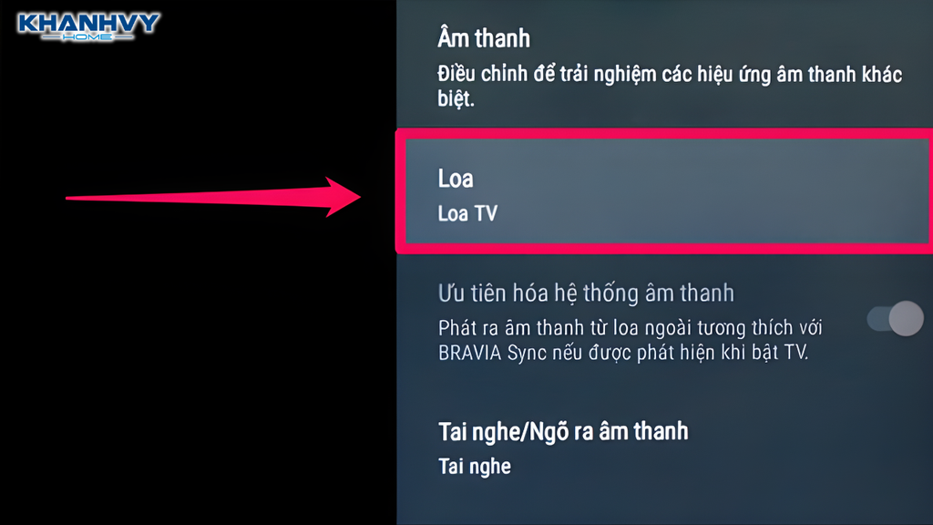 - Bước 3: Chuyển về loa tivi nếu đang chọn thiết bị ngoài.