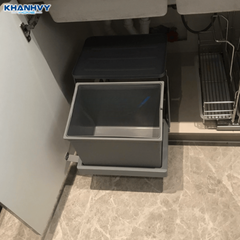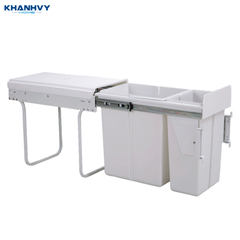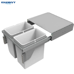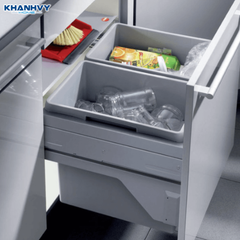 Thiết kế âm tủ dưới bồn rửa, 2 ngăn tách biệt rõ ràng giúp phân loại rác hữu cơ, vô cơ; nhựa nguyên sinh dày, ray giảm chấn cao cấp, kéo trượt toàn phần |