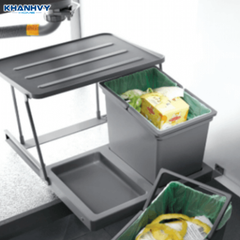 Bố trí 1 thùng 10L + 1 thùng 20L giúp kiểm soát lượng rác tồn; ray bi giảm chấn toàn phần, khung bắt đáy chắc chắn |