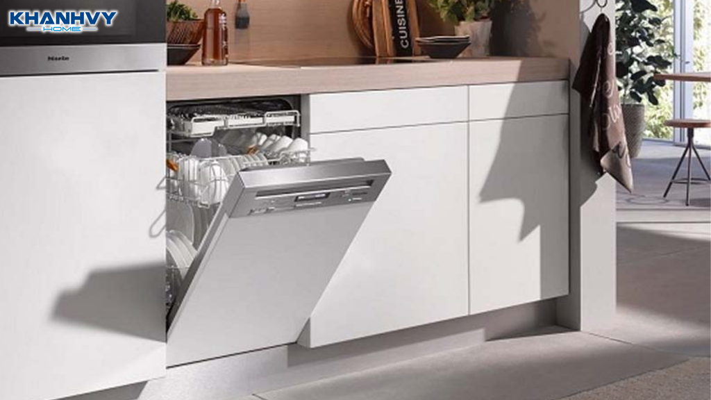 - Âm tủ toàn phần: mặt trước máy được che kín bằng cánh tủ, bảng điều khiển giấu ở mép cửa.