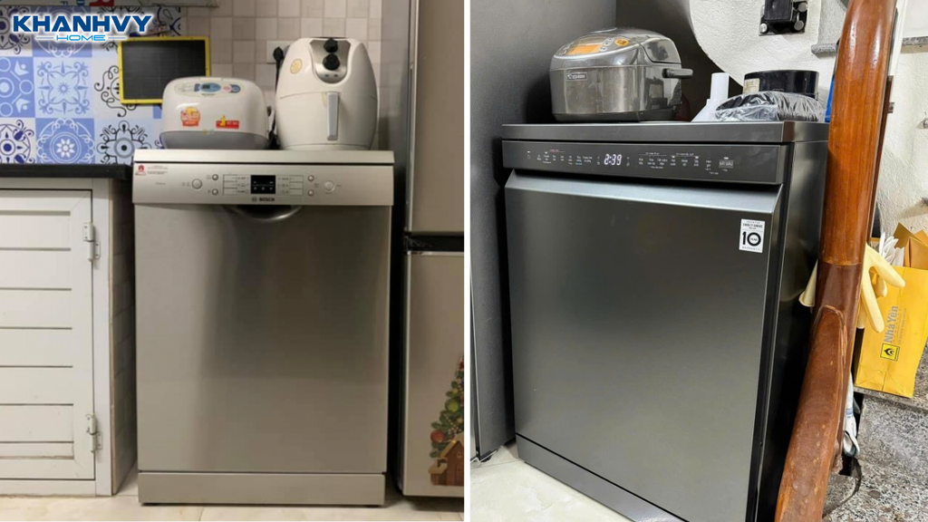 Tuy nhiên, vì đặt trực tiếp trên sàn nên máy chiếm một phần diện tích đáng kể, đặc biệt trong bếp nhỏ dễ gây cảm giác chật hơn. Ngoài ra, do không giấu trong tủ, máy có thể không đồng bộ với hệ tủ bếp, khiến tổng thể không gian bếp kém liền mạch.