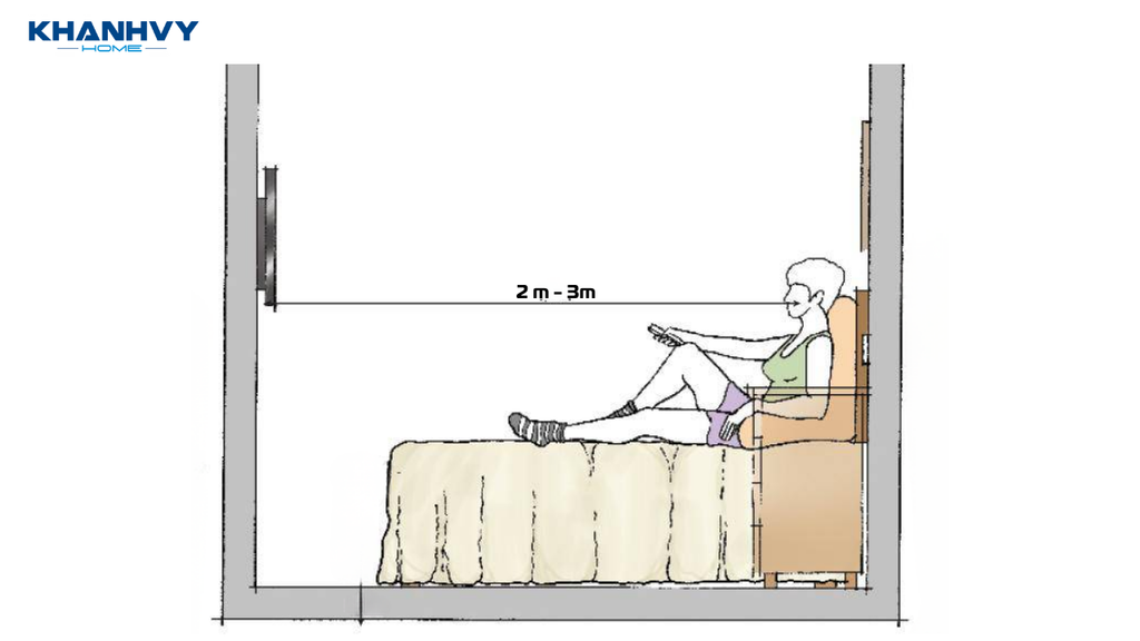 Khoảng cách này được tính từ vị trí ngồi hoặc nằm đến màn hình để đảm bảo bạn không phải điều chỉnh mắt hoặc cổ quá nhiều khi theo dõi nội dung trong thời gian dài, giúp trải nghiệm giải trí trở nên thoải mái hơn.