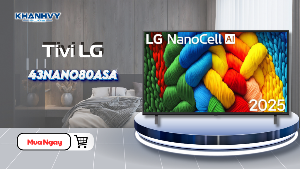 Tivi LG 43NANO80ASA NanoCell AI NANO80 43 inch là lựa chọn cân đối giữa kích thước và trải nghiệm hình ảnh dành cho phòng ngủ vừa, không chiếm diện tích nhưng vẫn đủ lớn để xem thoải mái. Công nghệ NanoCell giúp cải thiện màu sắc và độ tương phản, đồng thời hệ điều hành dễ dùng hỗ trợ các ứng dụng giải trí phổ biến.
