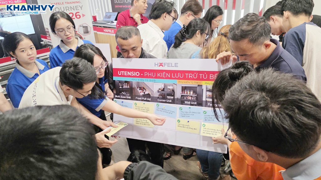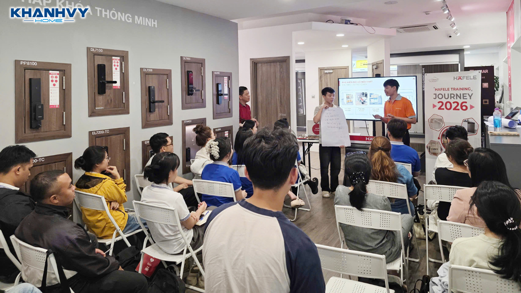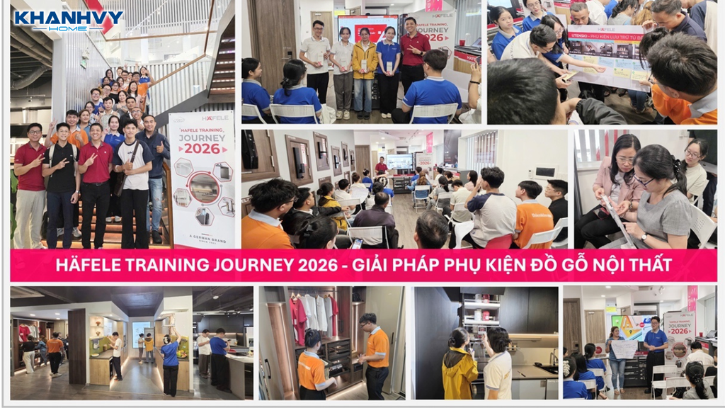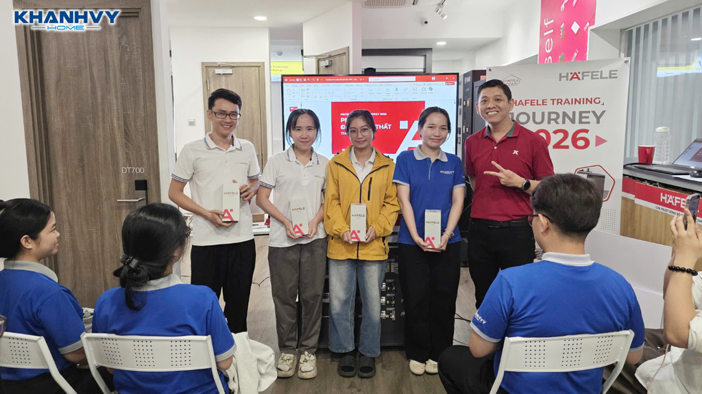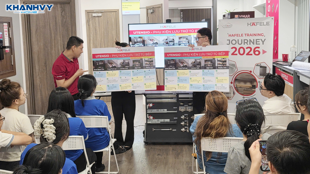 Vừa qua, Khánh Vy Home đã tham gia chương trình Hafele Training Journey 2026 với chủ đề phụ kiện đồ gỗ nội thất. Đây là cơ hội để đội ngũ cập nhật kiến thức chuyên môn, trải nghiệm thực tế sản phẩm và nắm bắt các giải pháp nội thất hiện đại, hướng đến việc nâng cao chất lượng thiết kế và thi công trong từng dự án.
