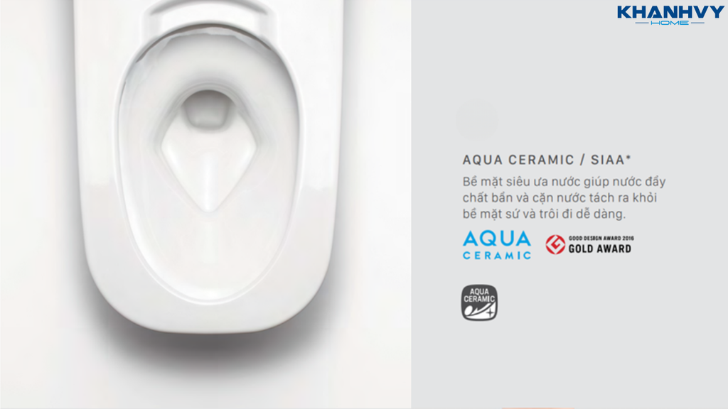 2. Công nghệ Aqua Ceramic: Giữ cho lòng bồn cầu luôn trắng sáng, chống bám bẩn vượt trội.