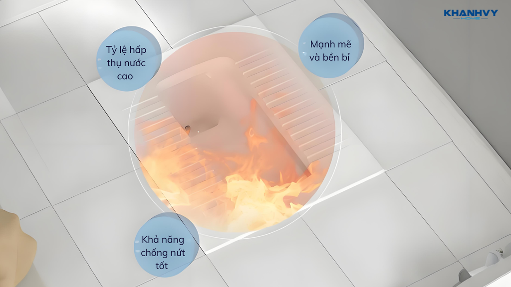 Một chiếc bồn cầu tốt cần có khả năng chịu lực cao và chống nứt vỡ trong quá trình sử dụng. Các sản phẩm của Jomoo được sản xuất từ sứ vệ sinh dày, nung ở nhiệt độ cao trên 1200°C, giúp chịu lực lên đến 300–400 kg, hạn chế rạn nứt và đảm bảo tuổi thọ lâu dài. Ngoài ra, lớp men bảo vệ cũng giúp chống trầy xước, chống ăn mòn bởi hóa chất tẩy rửa, duy trì vẻ sáng mới sau nhiều năm sử dụng.