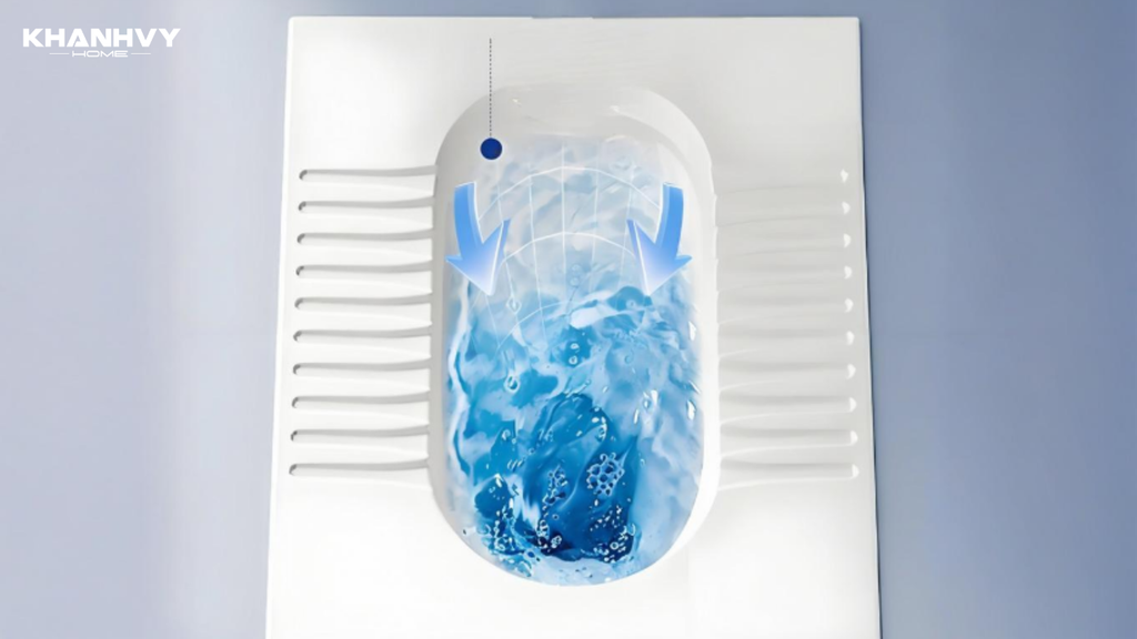 Với cấu trúc chống trượt an toàn, bồn cầu giúp người dùng yên tâm khi sử dụng trong môi trường ẩm ướt. Hệ thống cấp nước từ phía sau – thoát ra phía trước cùng lưu lượng xả 5.6L/lần mang lại khả năng làm sạch nhanh, tiết kiệm nước và không gây tiếng ồn. Đây là mẫu bồn cầu xổm phù hợp cho gia đình, khu trọ, trường học hoặc công trình công cộng, nơi cần thiết bị vệ sinh bền – dễ vệ sinh – giá hợp lý.