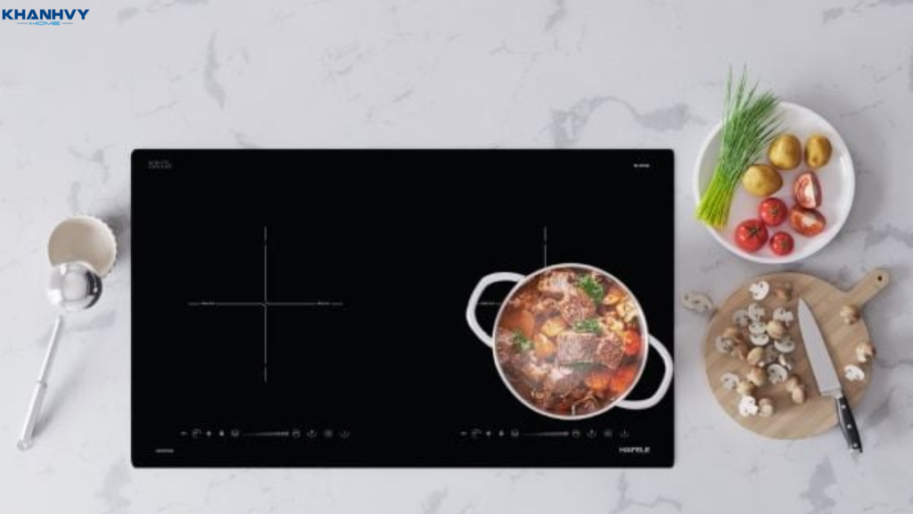 Hafele là thương hiệu thiết bị nhà bếp cao cấp của Đức được Khánh Vy Home phân phối rộng rãi. Bếp điện từ Hafele có thiết kế sang trọng, mặt kính chịu nhiệt Schott Ceran bền bỉ và dễ vệ sinh. Bếp Hafele nổi bật với tính năng inverter tiết kiệm điện, chế độ nấu nhanh booster, và hệ thống điều khiển cảm ứng tiện lợi. Khách hàng đánh giá cao khả năng vận hành êm ái, an toàn và đa dạng vùng nấu. Giá thành sản phẩm thuộc phân khúc trung cao cấp, phù hợp với gia đình hiện đại yêu cầu thiết bị bếp thông minh và tiện ích.