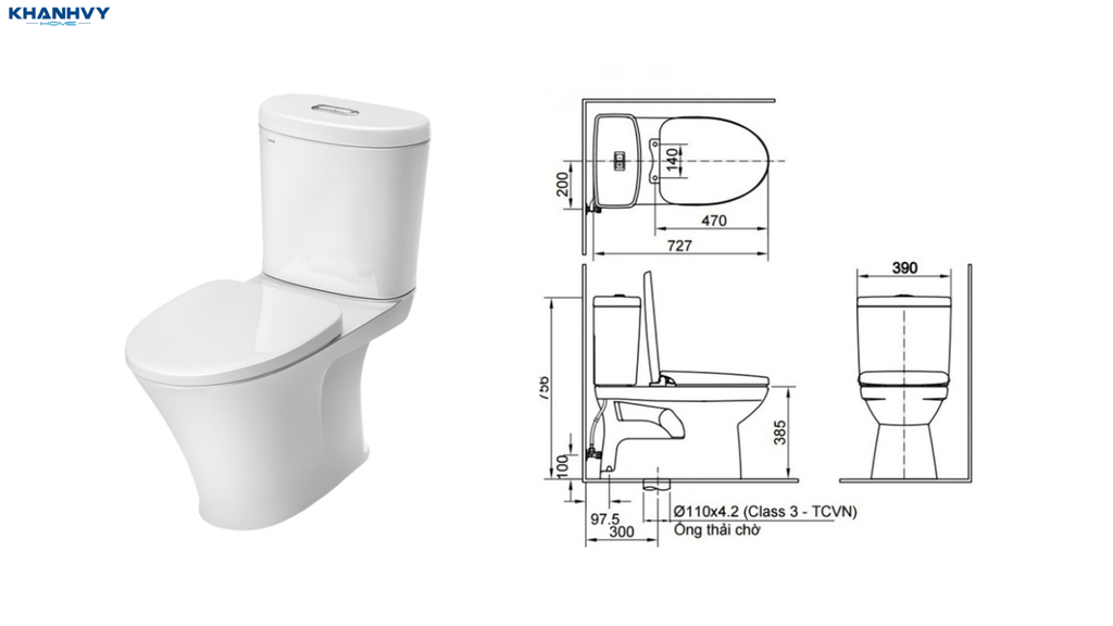 Lượng nước xả | 4.5 L/3.0 L, 4.8 L/3 L | 6.5 L/3 L hoặc xả xoáy mạnh Vortex – Powerful Vortex |