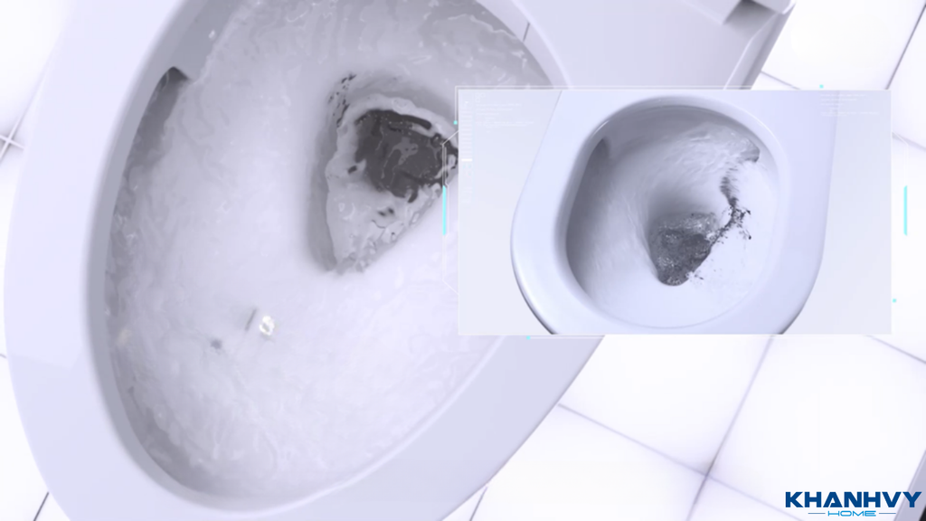 Công nghệ xả xoáy mạnh mẽ, làm sạch 360 độ lòng cầu.