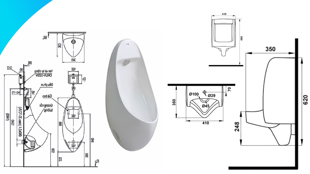 Kích thước cơ bản của bồn tiểu nam Hafele