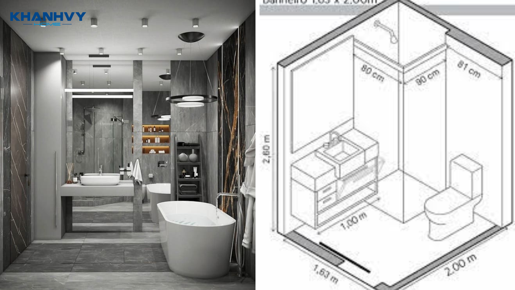 Kiểu này phổ biến với các phòng tắm gia đình truyền thống, mang lại sự cân đối và tiện nghi.