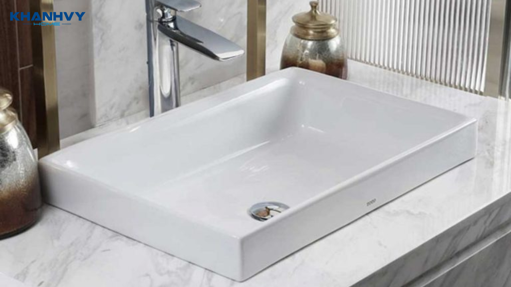 Chất liệu | Sứ cao cấp, men trắng bóng, chống ố vàng | Linear Ceram siêu bền (TOTO), composite, đá nhân tạo |