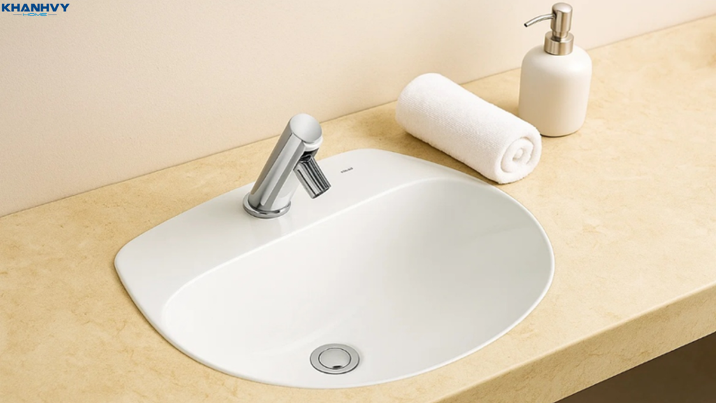 Khác với các loại lavabo dương vành hay bán âm, toàn bộ phần vành và thân chậu âm bàn được giấu kín, chỉ để lộ lòng chậu. Điều này giúp loại bỏ các góc cạnh khó lau chùi, ngăn ngừa nấm mốc và vi khuẩn tích tụ, đặc biệt phù hợp với các gia đình có người lớn tuổi và trẻ nhỏ, những người luôn đặt yếu tố vệ sinh lên hàng đầu.