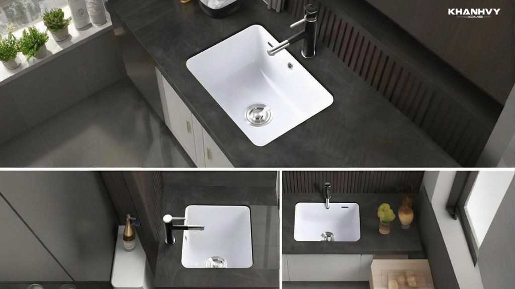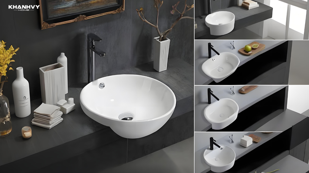 Nhỏ (dưới 4–5 m²) | Lavabo âm bàn / bán âm bàn / lavabo mini | Tiết kiệm diện tích, tạo cảm giác gọn gàng | Nên chọn mẫu có chiều sâu vừa phải để tránh bắn nước |