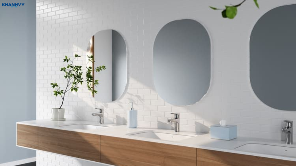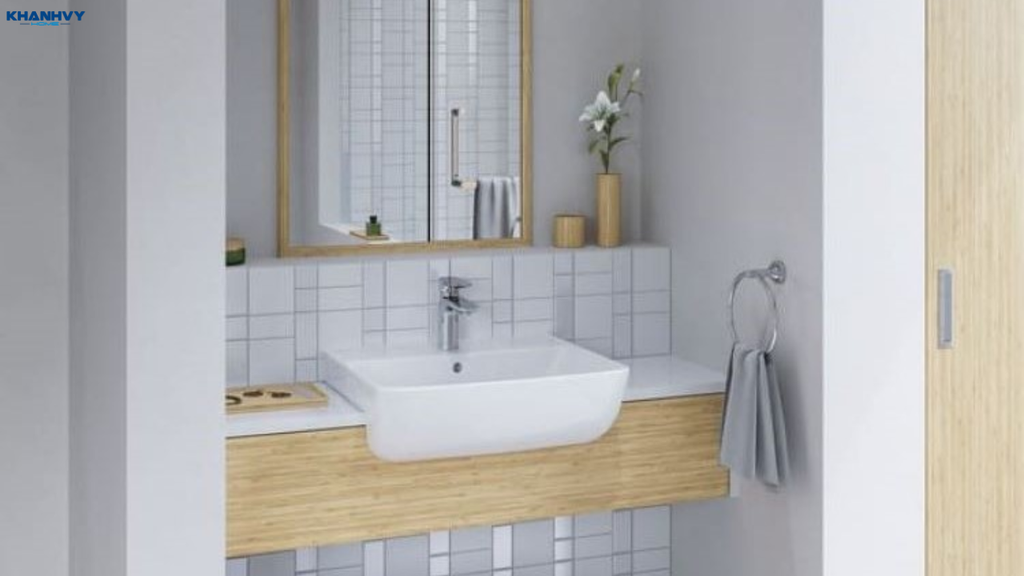 Với những phòng tắm có diện tích nhỏ, các mẫu lavabo treo tường hoặc lavabo âm bàn thường là lựa chọn tối ưu. Lavabo treo tường gọn nhẹ, không chiếm nhiều diện tích, tạo cảm giác thoáng đãng. Trong khi đó, lavabo âm bàn giúp tận dụng tối đa mặt bàn, vừa gọn gàng vừa tiện lợi trong quá trình sử dụng.