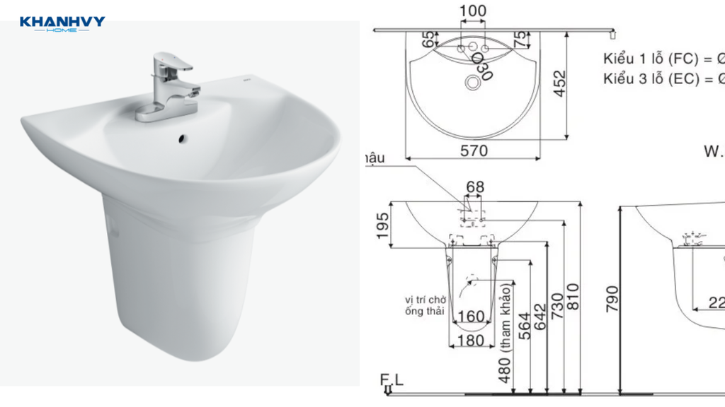 Thông thường, các mẫu chậu này có kích thước đa dạng, từ 40cm đến 60cm chiều rộng và 15cm đến 20cm chiều sâu, giúp tiết kiệm diện tích tối đa. Bạn nên đo đạc kỹ lưỡng không gian tường trước khi mua, đảm bảo khoảng cách từ sàn đến chậu khoảng 80-85cm để dễ sử dụng.