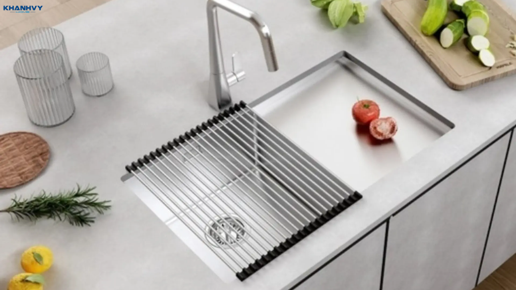 Ngoài ra, nên chú ý đến độ sâu của lòng chậu để đảm bảo nước không bắn ra ngoài khi sử dụng. Chậu sâu hơn cũng giúp việc rửa xoong nồi lớn trở nên thuận tiện hơn.