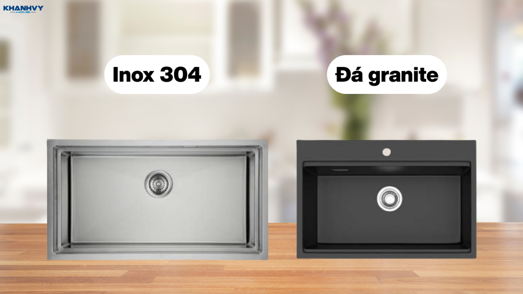 Chất liệu | Inox 304 sáng bóng | Đá granite, inox phủ nano chống bám bẩn |