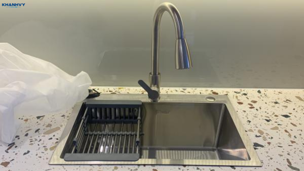 Inox 304 được coi là “tiêu chuẩn vàng” trong sản xuất chậu rửa chén. Ưu điểm nổi bật của chất liệu này là khả năng chống gỉ sét, chống ăn mòn trong môi trường ẩm ướt, giữ độ bền lâu dài. Ngoài ra, inox 304 có bề mặt sáng bóng, dễ vệ sinh và hạn chế bám bẩn, giúp gian bếp luôn sạch sẽ. Quan trọng hơn, đây là chất liệu an toàn cho sức khỏe, không gây thôi nhiễm kim loại nặng trong quá trình sử dụng, mang lại sự an tâm tuyệt đối cho người dùng.